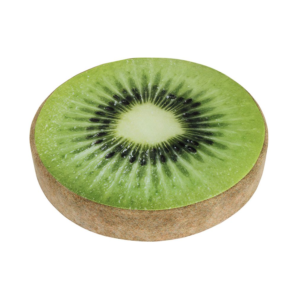 Kulatý sedák ORESTE v imitaci kiwi o průměru 38cm s výškou cca 7cm. Sedák je vhodný pro použití na zahradu i pro vnitřní použití. Snímatelný povlak se zipem má příjemný a hebký povrch (mikro) a je vyroben ze 100% polyesteru a pevná výplň ze 100% polyuretanu. Díky tomu je sedák také velmi pohodlný. Možnost praní na 30°C.