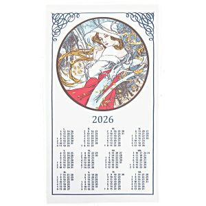 - Textilní kalendář, utěrka ALFONS MUCHA PANNA 2026, bílý, 40x70cm, bez hůlkyRegular Price 146 Kč Zlevněná / akční cena 99 Kč