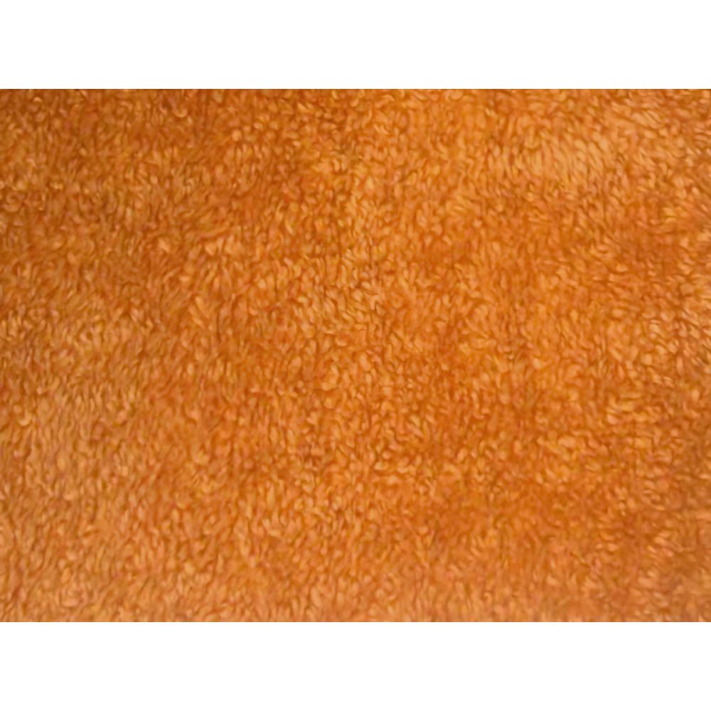 Dekorační plyš TERAN se strukturou vlasu beránek, v pomerančově oranžové barvě, v metráži o šířce 150 cm.