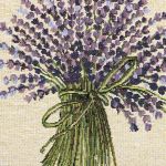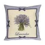 Dekorační polštářek / povláček RETRO KYTIČKA LEVANDULE, FIALOVÝ KOSTIČKOVANÝ LEM, 45x45cm