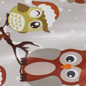 - Ubrus PVC s textilním podkladem 434/0 stříbrný, zimní, vánoční barevné sovy na stromě, š.140cm (metráž)130 Kč