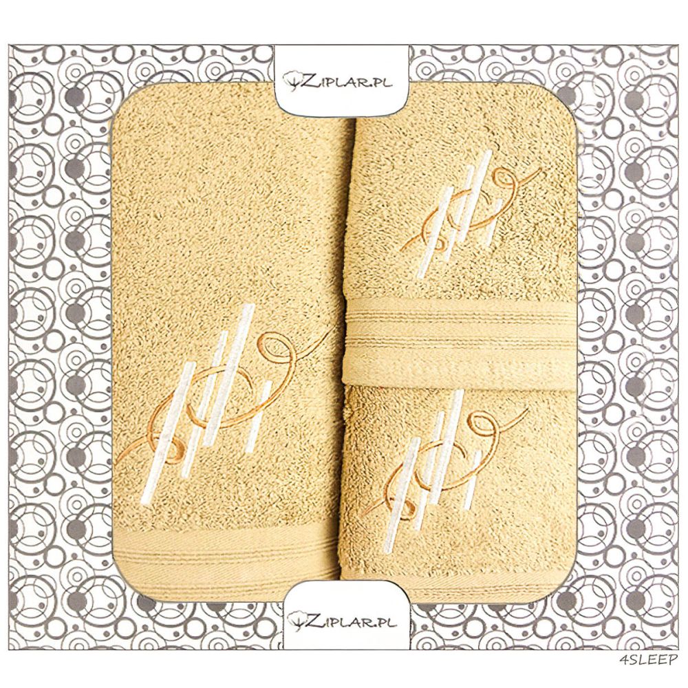 Dárkový set froté ručníků (1x 30x50cm, 1x 50x100cm) a osušek (1x 70x140cm) s vyšívaným ornamentem na béžovém podkladu. Ručníky jsou vyrobeny z vysoce kvalitní 100% bavlny s vysokou gramáží, díky čemuž jsou velmi hebké, savé a mají nadýchaný vzhled. Vyrobeny jsou v gramáži 450g/m2. Dodáváno v dárkovém, krabicovém balení.