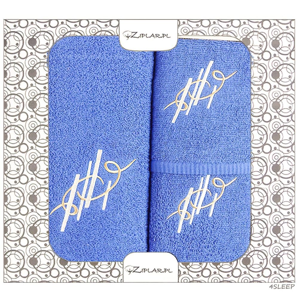 Dárkový set froté ručníků a osušek, 3-dílný, královská modrá s výšivkou, 1x 30x50cm + 1x 50x100cm + 1x 70x140cm