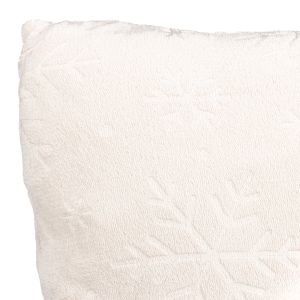 Dekorační polštářek z mikrovlákna se vzorem vytlačeného vzoru vloček v zelené barvě. Polštářek je z obou stran stejný. Povlak na polštářek je vyroben ze 100% mikropolyesteru a výplň je tvořena ze 100% polypropylenu (dutého vlákna). Povlak je snímatelný na zip.