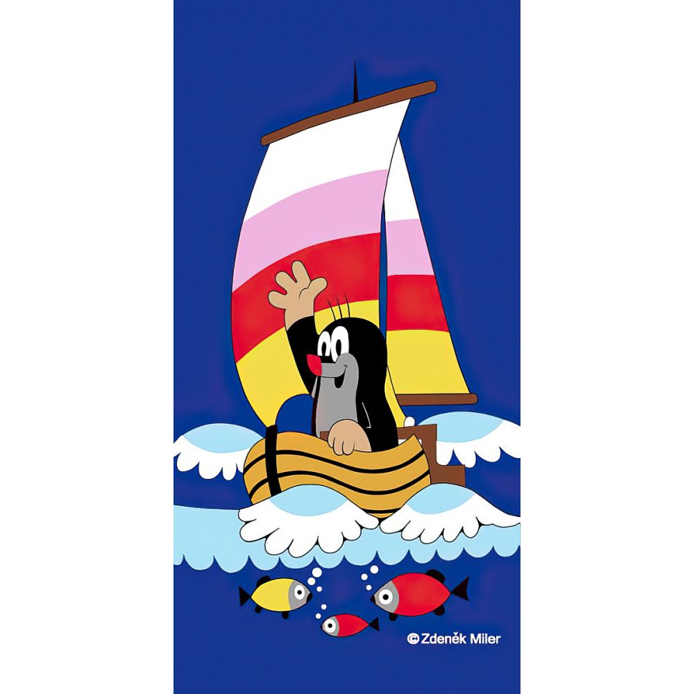 Dětská plážová osuška KRTEK A VODA (Krteček), modrá, froté, 70x150cm