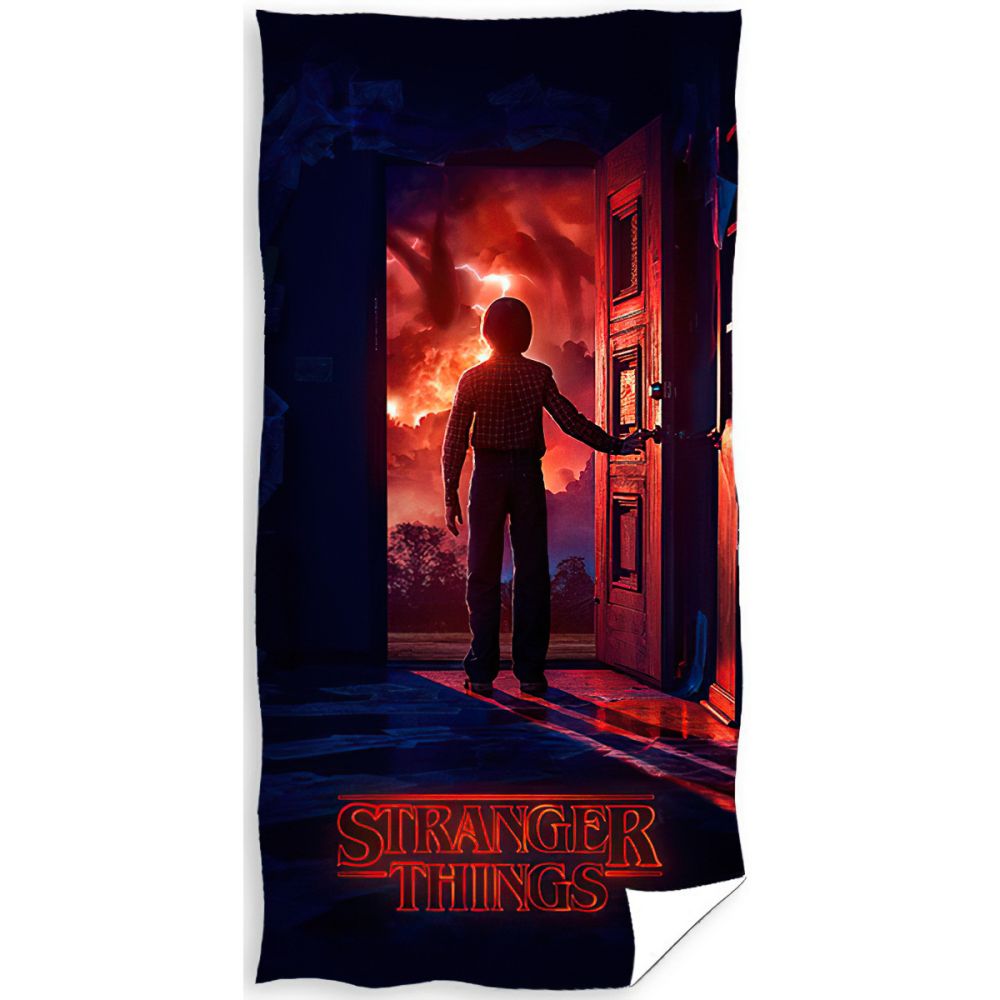 Dětská plážová osuška STRANGER THINGS STORM, červeno-černá, froté, 70x140cm