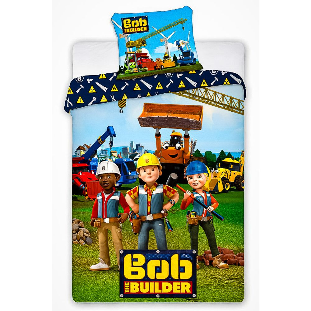 Dětské bavlněné povlečení se vzorem Bořka stavitele a jeho kolegů v pozadí se stavebními stroji na zeleném podkladu. Povlak na polštář má motiv stavebních strojů na modrém pozadí. Z druhé strany jsou malé značky a pracovní nářadí na modré. Souprava je vyrobena ze 100% bavlny a obsahuje jeden povlak na přikrývku 140 x 200 cm a jeden povlak na polštář 70 x 90 cm. Zapínání na zip.
