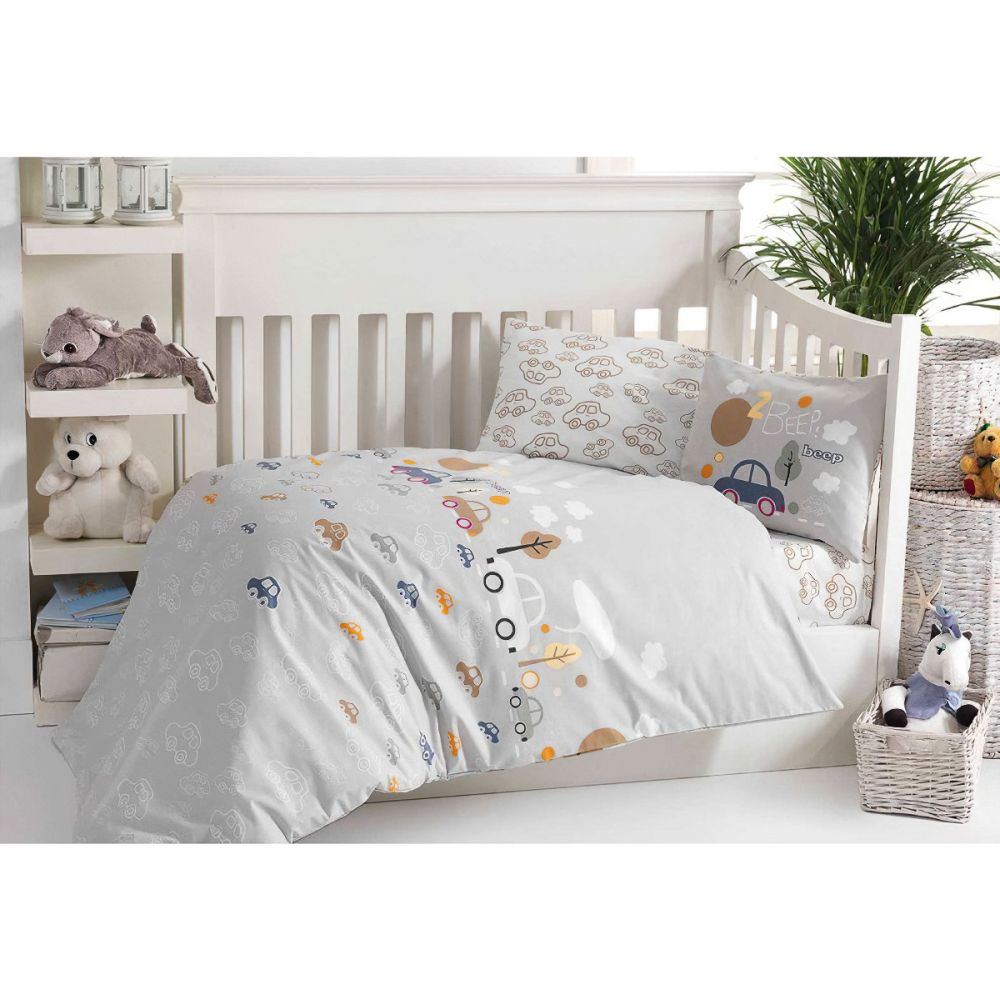 Dětské povlečení do postýlky AUTÍČKA, světle šedé, bavlna hladká, 100x135cm + 40x60cm