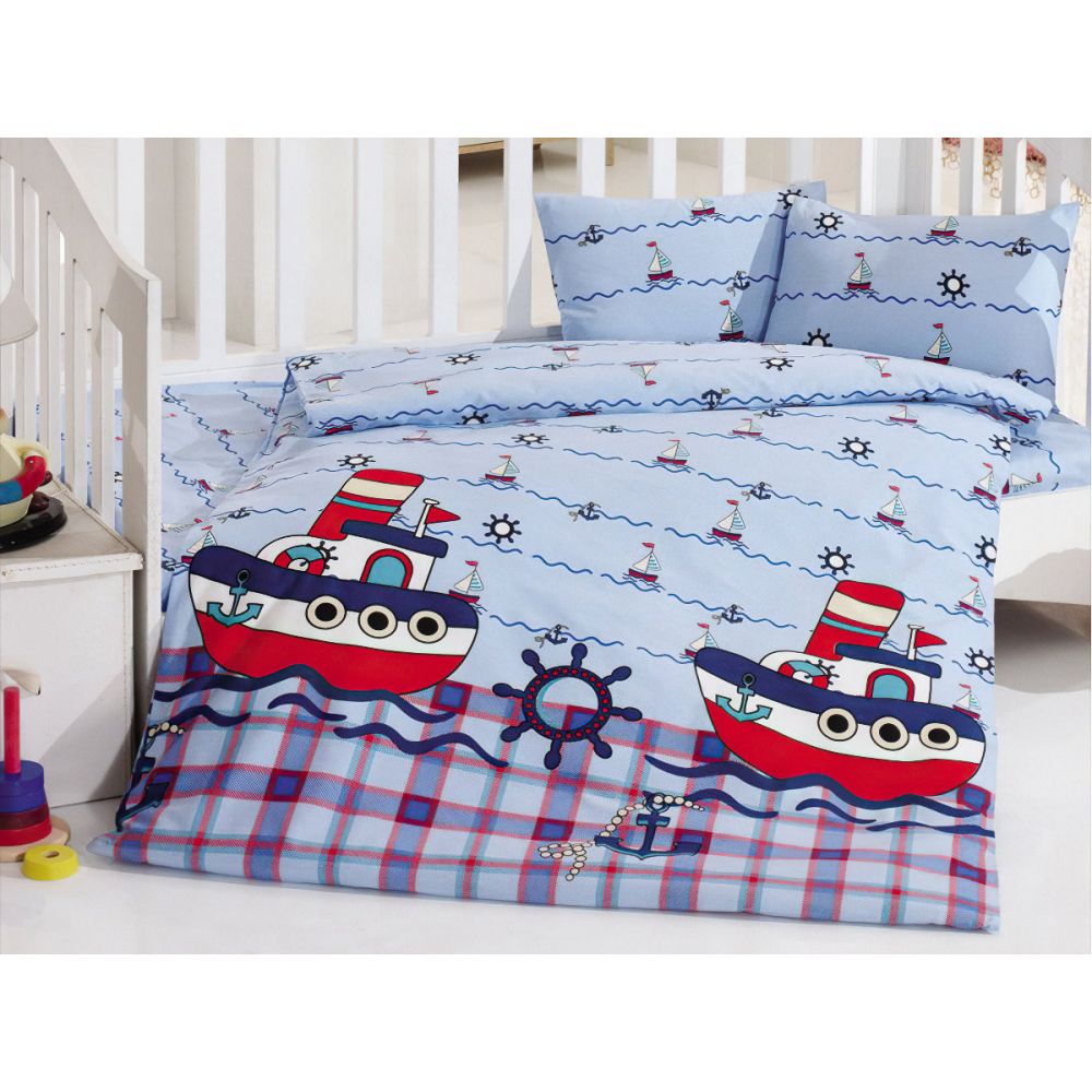 Dětské povlečení do postýlky LODIČKY, modré, bavlna hladká, 100x135cm + 40x60cm
