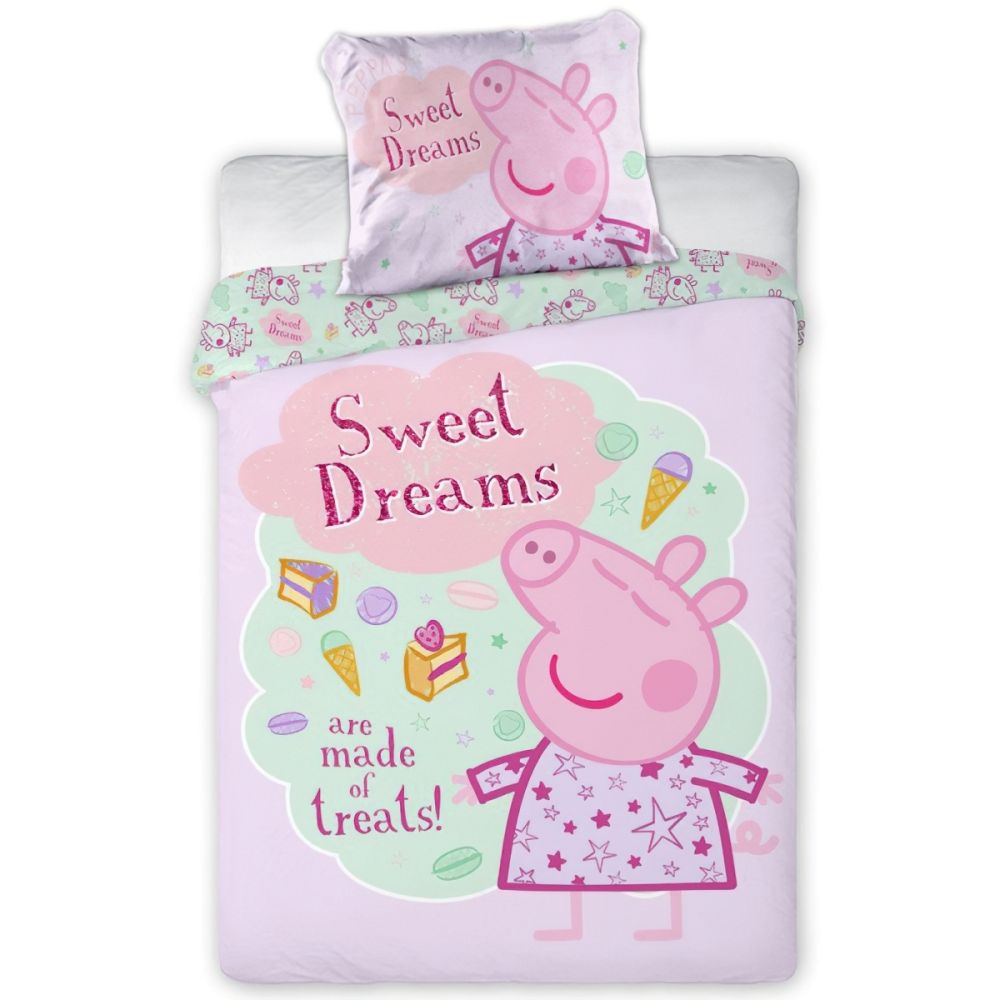 Dětské povlečení do postýlky PRASÁTKO PEPINA (PEPPA) DNESKA SLADKÉ SNĚNÍ, světle růžové, bavlna hladká, 100x135cm + 40x60cm