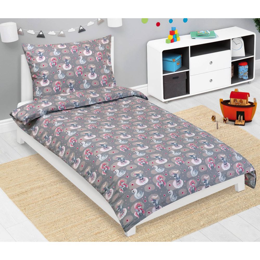 Dětské povlečení JEDNOROŽEC, LABUŤ ŠEDÁ, bavlna hladká, 140x200cm + 70x90cm