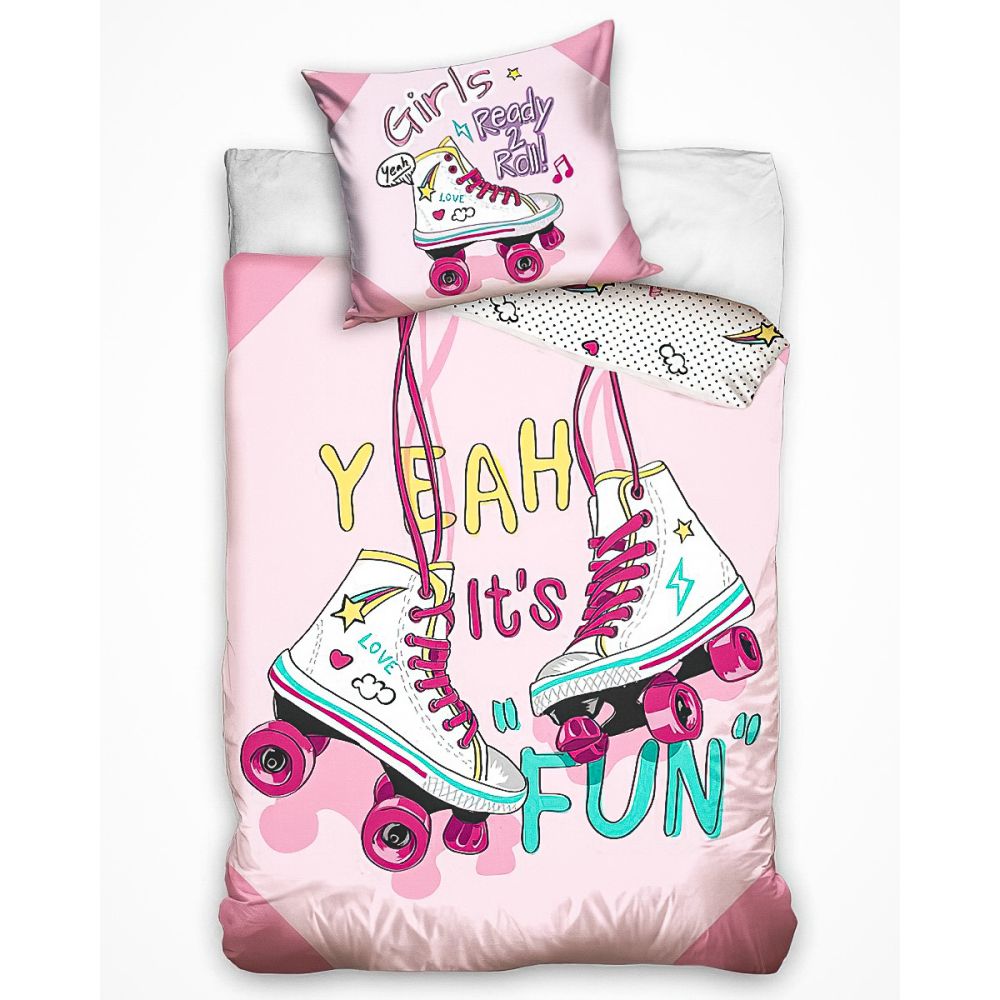Dětské povlečení KOLEČKOVÉ BRUSLE READY 2 ROLL, růžové, bavlna hladká, 140x200cm + 70x90cm