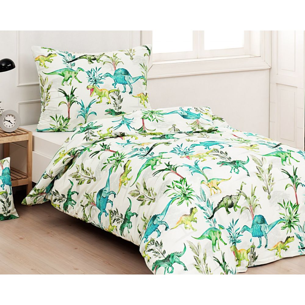 Dětské povlečení Matějovský DINO FRIENDS, dinosauři, modro-zelené bavlna hladká digital, 140x200cm + 70x90cm