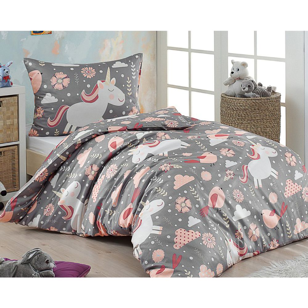 Dětské povlečení Matějovský LILY, jednorožec na šedé, krep, 140x200cm + 70x90cm