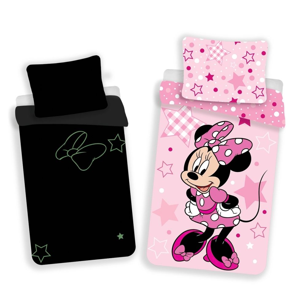 Dětské povlečení MINNIE 02 SVÍTÍCÍ EFEKT, růžové, bavlna hladká, 140x200cm + 70x90cm