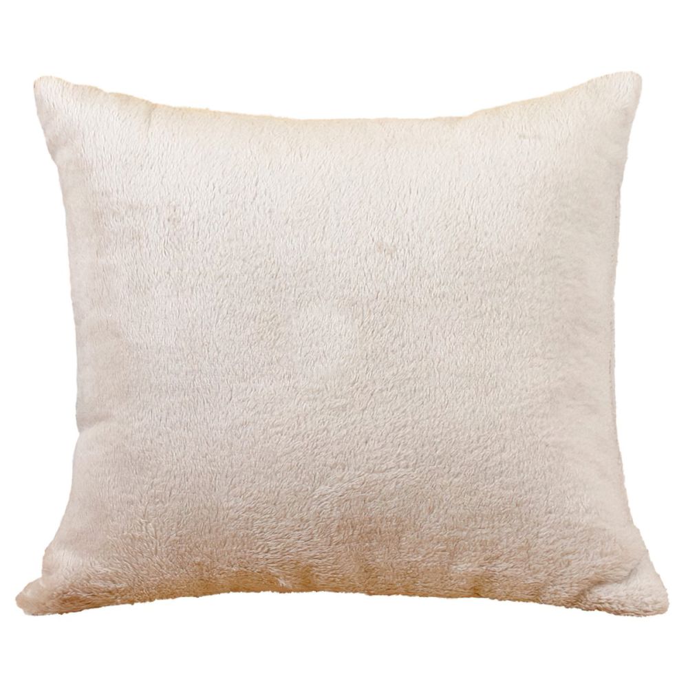 Dekorační polštářek v čistě béžové barvě. Polštářek je z obou stran stejný. Povlak na polštářek je vyroben ze 100% polyesteru a výplň je tvořena ze 100% Polyesteru (kuličky z dutého vlákna).