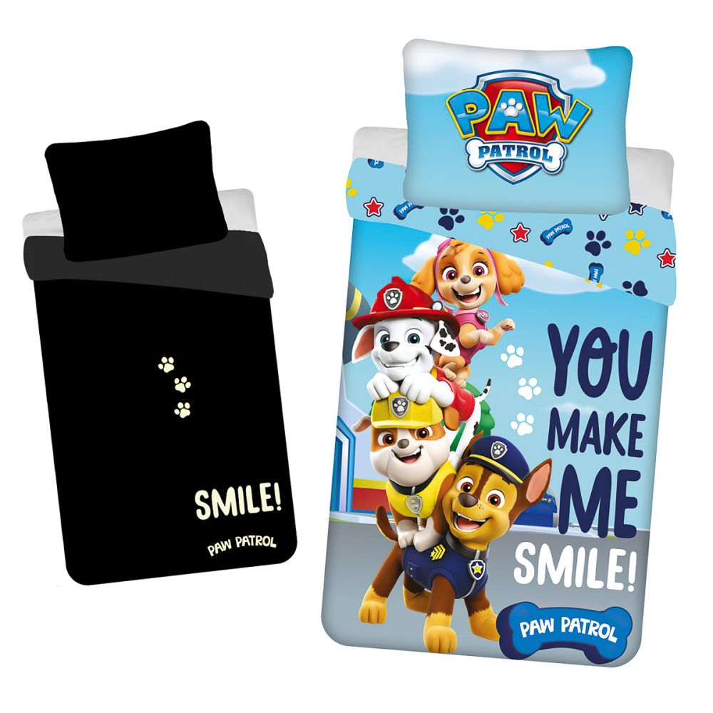 Dětské povlečení TLAPKOVÁ PATROLA (PAW PATROL PP325) SVÍTÍCÍ EFEKT, modré, bavlna hladká, 140x200cm + 70x90cm