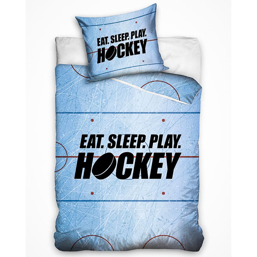 Hokejové povlečení EAT SLEEP PLAY HOCKEY, světle modré, bavlna hladká, 140x200cm + 70x90cm