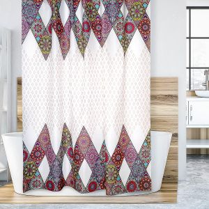 Koupelnový závěs je vyrobený z tkaného polyesteru (100% polyester) se speciální nepromokavou úpravou v rozměru š. 180 x v. 200 cm. Díky použitému materiálu je závěs odolný a má vysokou životnost. Závěs je dodáván spolu s kroužky (12 ks) pro zavěšení na tyč. Lze prát v pračce na jemné praní na 40°C. Moderní vzor jistě doplní a oživí i Vaši koupelnu.