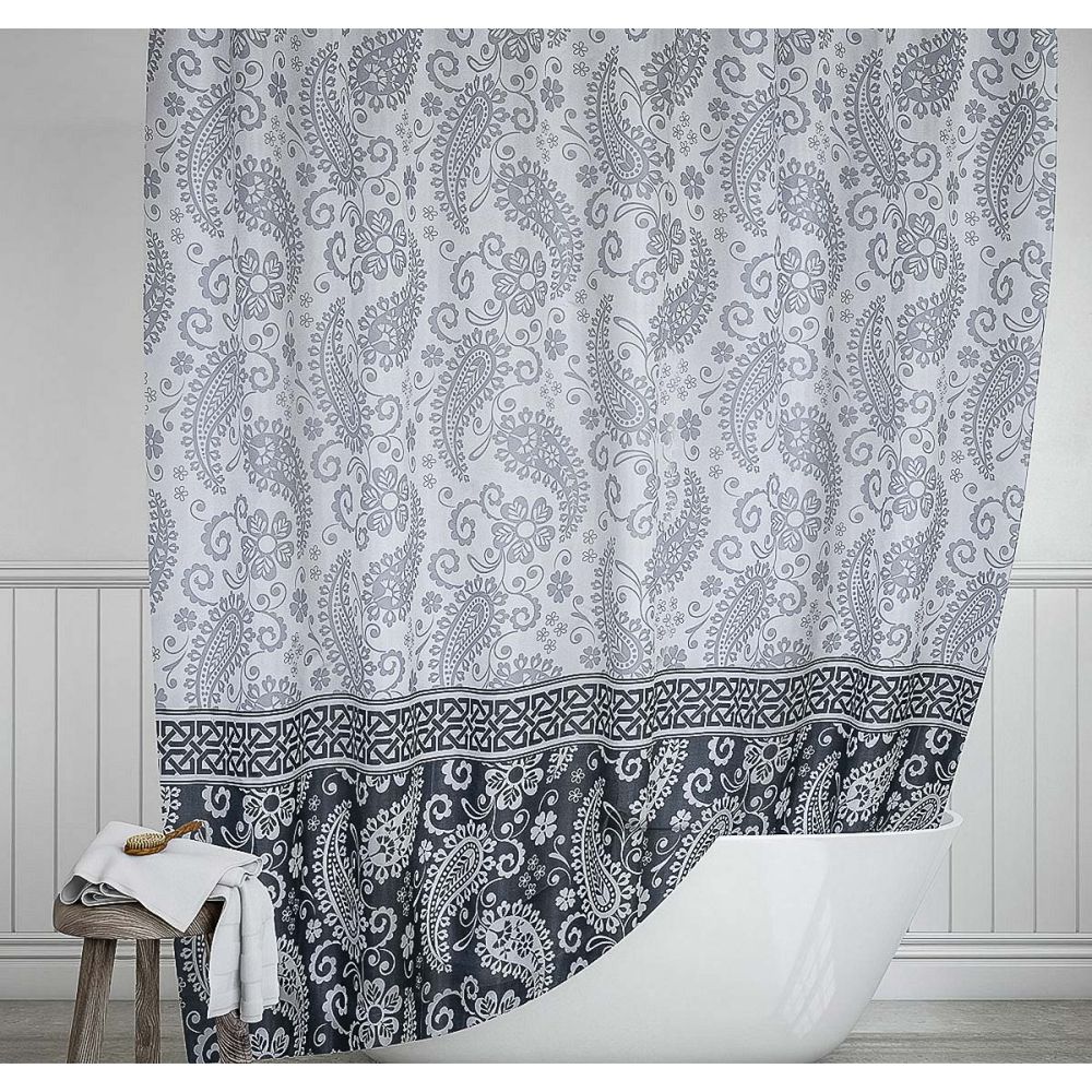 Koupelnový závěs od výrobce Bellatex je z kvalitní polyesterové tkaniny (100% polyester) s nepromokavou úpravou vyrobenou tak, aby měla dlouhodobou voděodolnost. Spolu se závěsem je v balení i 12 kroužků pro zavěšení na tyč. Závěs je v šířce 180 cm a výška je 200 cm. Motiv kašmírového vzoru v šedé barvě je potištěn jen z jedné strany.