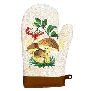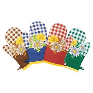 Kuchyňská chňapka (rukavice) se vzorem cesmíny. Chňapka má poutko na zavěšení. Chňapka je v rozměru 28x18cm a je vyrobena ze 100% bavlny s výplní ze 100% polyesteru (rouno z dutého vlákna). Chňapka je v soupravě s podložkou pod hrnce 20x20cm a vařečkou v dárkovém balení.