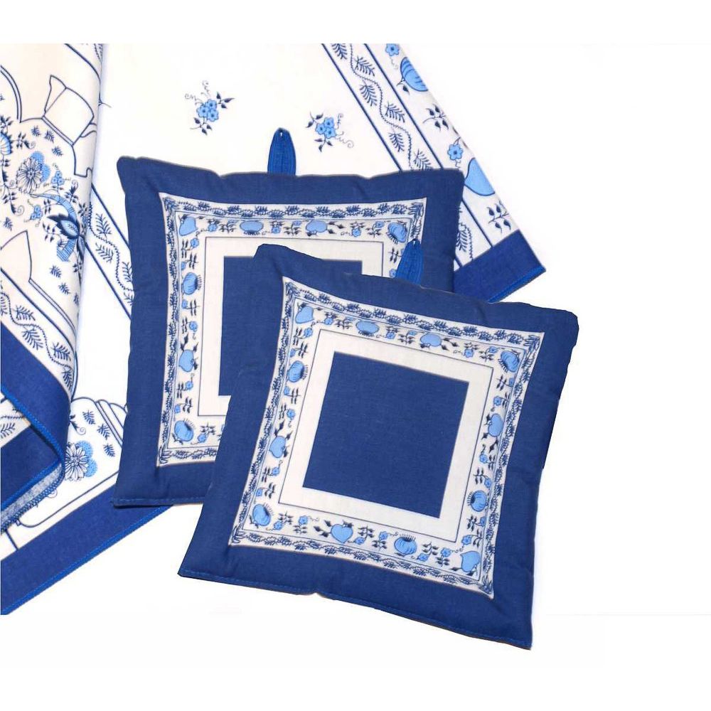 Kuchyňská podložka pod horké hrnce je vyrobena ze 100% bavlny s výplní ze 100% polyesteru (rouno z dutého vlákna) ve čtvercovém rozměru cca 20x20 cm s tradičním venkovským oboustranným cibulákovým vzorem v modrobílém provedení.