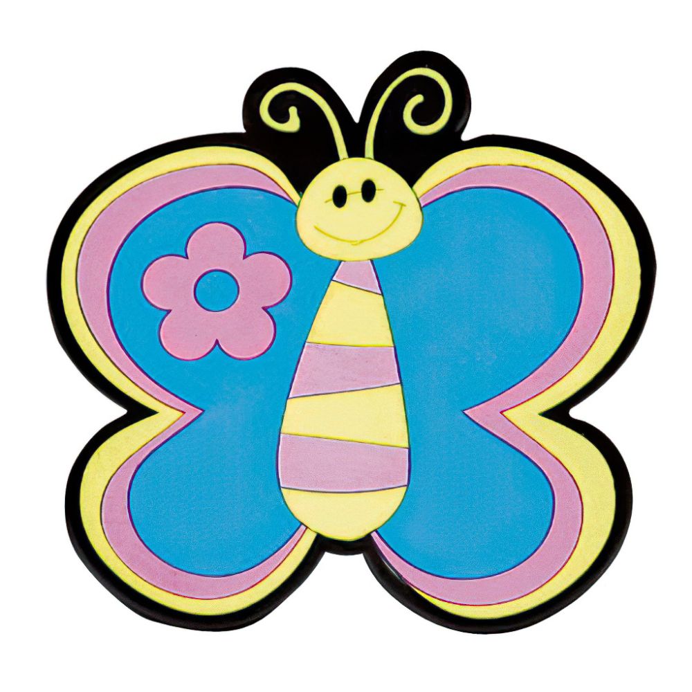 Praktická nerozbitná, omyvatelná kuchyňská podložka pod horký hrníček, je vyrobena z velmi odolného 100% PVC v rozměru 10x10cm s motivem modrého motýlka.