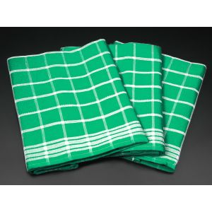 Souprava tří kusů kuchyňských utěrek z exkluzivní egyptské bavlny v rozměru 50x70cm v zelené barvě v provedení se středně velkým kárem.