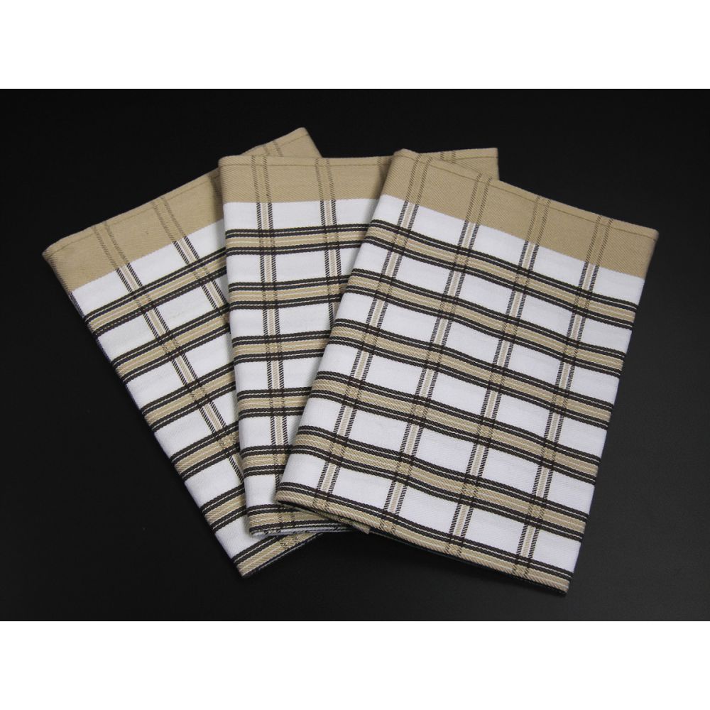 Souprava tří kusů kuchyňských utěrek z exkluzivní egyptské bavlny v rozměru 50x70cm v hnědé barvě v provedení se středně velkým kárem.