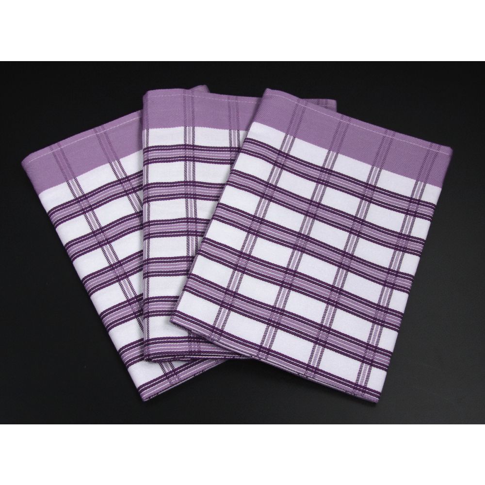 Souprava tří kusů kuchyňských utěrek z exkluzivní egyptské bavlny v rozměru 50x70cm ve fialové barvě v provedení se středně velkým kárem.