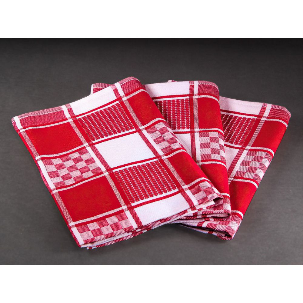 Souprava tří kusů kuchyňských utěrek z exkluzivní egyptské bavlny v rozměru 50x70cm v červené barvě v provedení káro s kostkami.