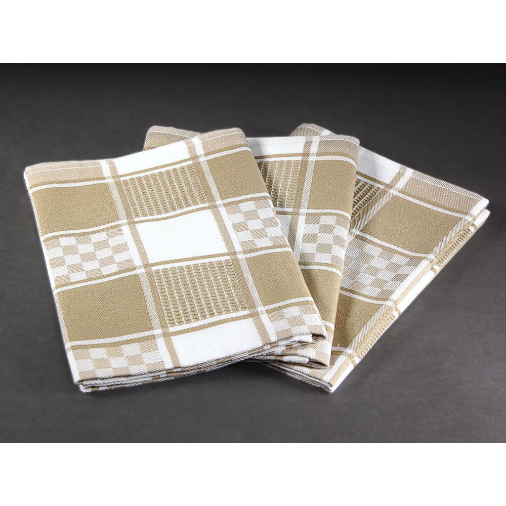 Souprava tří kusů kuchyňských utěrek z exkluzivní egyptské bavlny v rozměru 50x70cm v béžové barvě v provedení káro s kostkami.