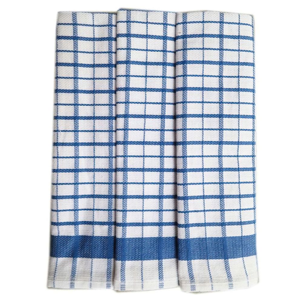 Souprava tří kusů kuchyňských utěrek z exkluzivní egyptské bavlny v rozměru 50x70cm v s motivem modro-bílého kára s pruhem.