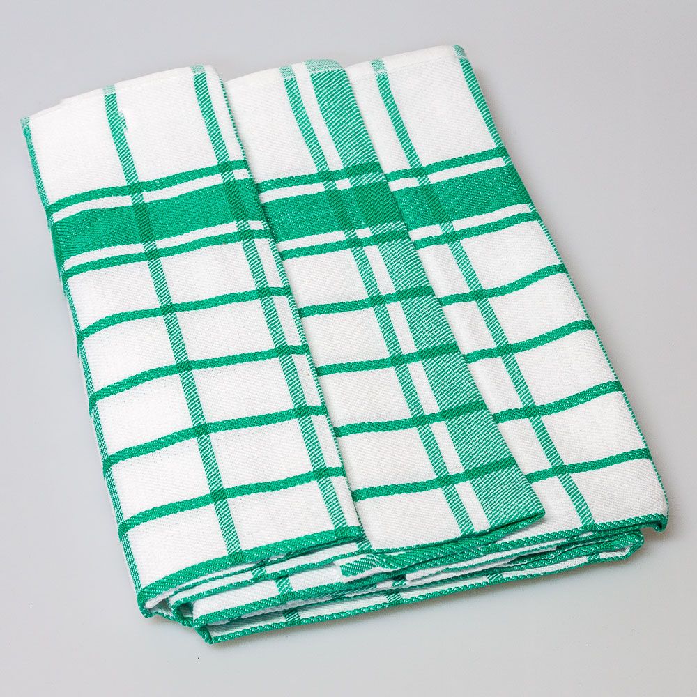 Souprava tří kusů kuchyňských utěrek z exkluzivní egyptské bavlny v rozměru 50x70cm v zelené barvě v provedení se středně velkým kárem.