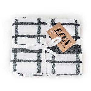 Souprava tří kusů velmi kvalitních kuchyňských utěrek z egyptské bavlny s vysokou gramáží 230 g/m2. Díky použití egyptské bavlny jsou utěrky vysoce savé, měkké a mají dlouhou životnost. Kombinace barev a jednoduchý vzor je vhodný pro každou moderní kuchyni.