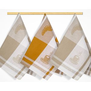 Souprava tří kusů kvalitních kuchyňských utěrek ze 100% bavlny s vysokou gramáží 240 g/m2. Díky použití kvalitní bavlny jsou utěrky savé, měkké a mají dlouhou životnost. Kombinace barev a jednoduchý vzor je vhodný pro každou moderní kuchyni.