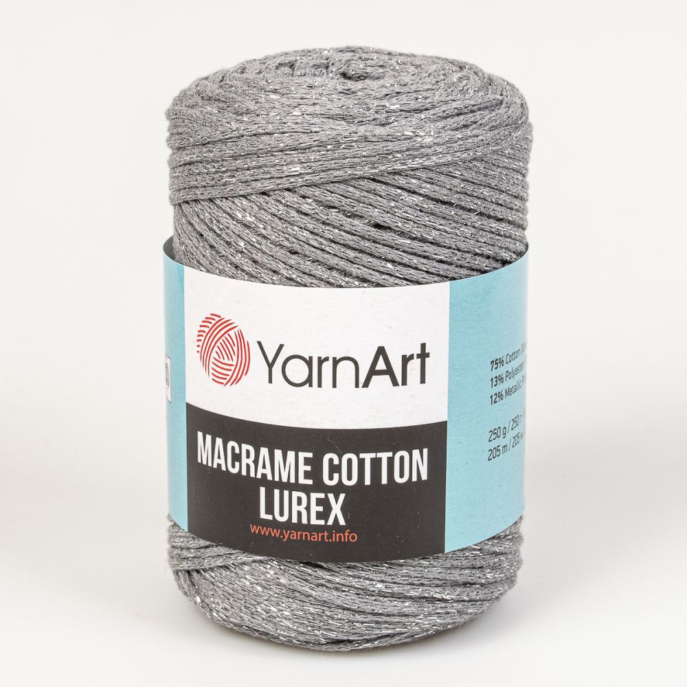 Macrame Cotton Lurex je pevná a kvalitní příze díky způsobu výroby splétání tenkých vláken. Tuto přízi lze uplatnit pro výrobu bytových doplňků - podložek, obalů na květináče, košíčků, a také pro tvorbu módních doplňků - kabelek, šperků a síťových tašek. Metalické vlákno na omak téměř neucítíte. Tato příze je atestována TZÚ pro děti do 3 let. Doporučujeme prát na 30°C, nesmí se bělit, nežehlit, sušit v rozprostřené vodorovné poloze.