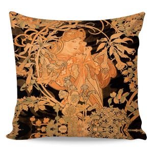 Polštářek / povláček ALFONS MUCHA JOB, hnědý, 40x40cm, 40x40cm (více variant výplně)