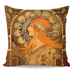 Povlak na polštářek z originální kolekce Alfons Mucha v typické kresbě a motivech v hnědých odstínech od výrobce Matějovský. Povlak je z obou stran stejný a je potištěný ekologickými barvami digitální technologií. Povlak na polštářek je vyroben ze 100% bavlny a je opatřen zapínáním na ZIP. Povlak je možné objednat samostatně bez výplně, s levnější dekorační výplní nebo luxusnější výplní na spaní.