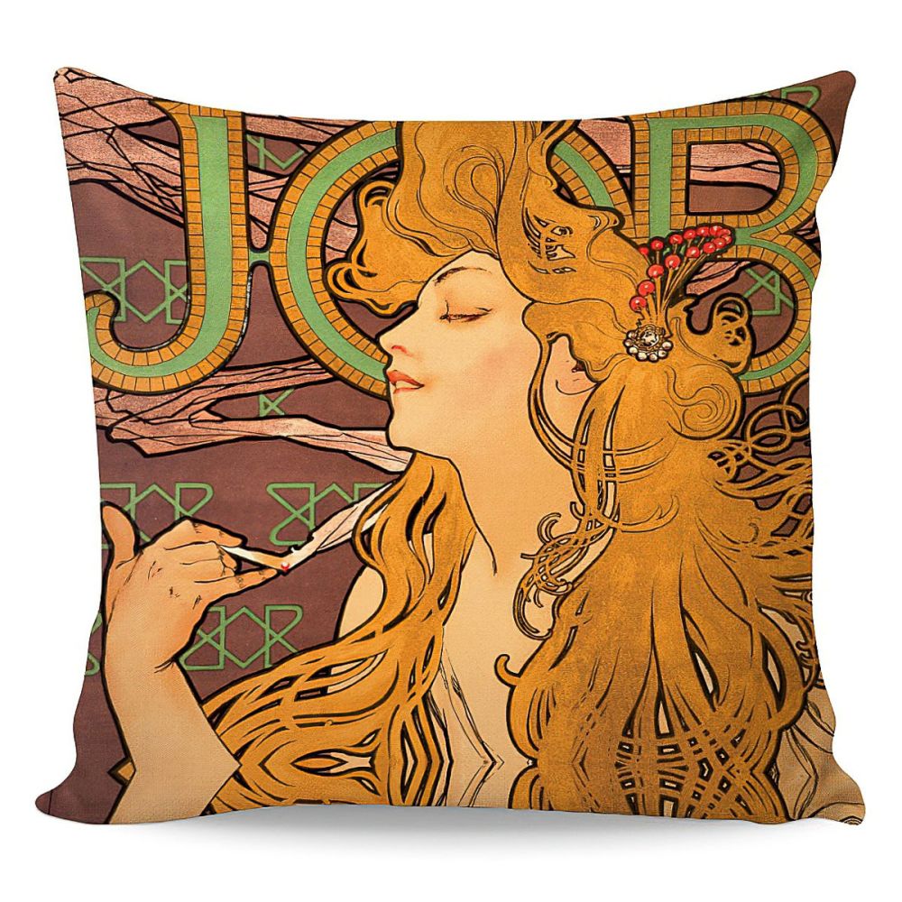 1 x Povlak na polštářek ALFONS MUCHA JOB, hnědý, 40x40cm (Skladem ihned 1 ks)   + 250 Kč