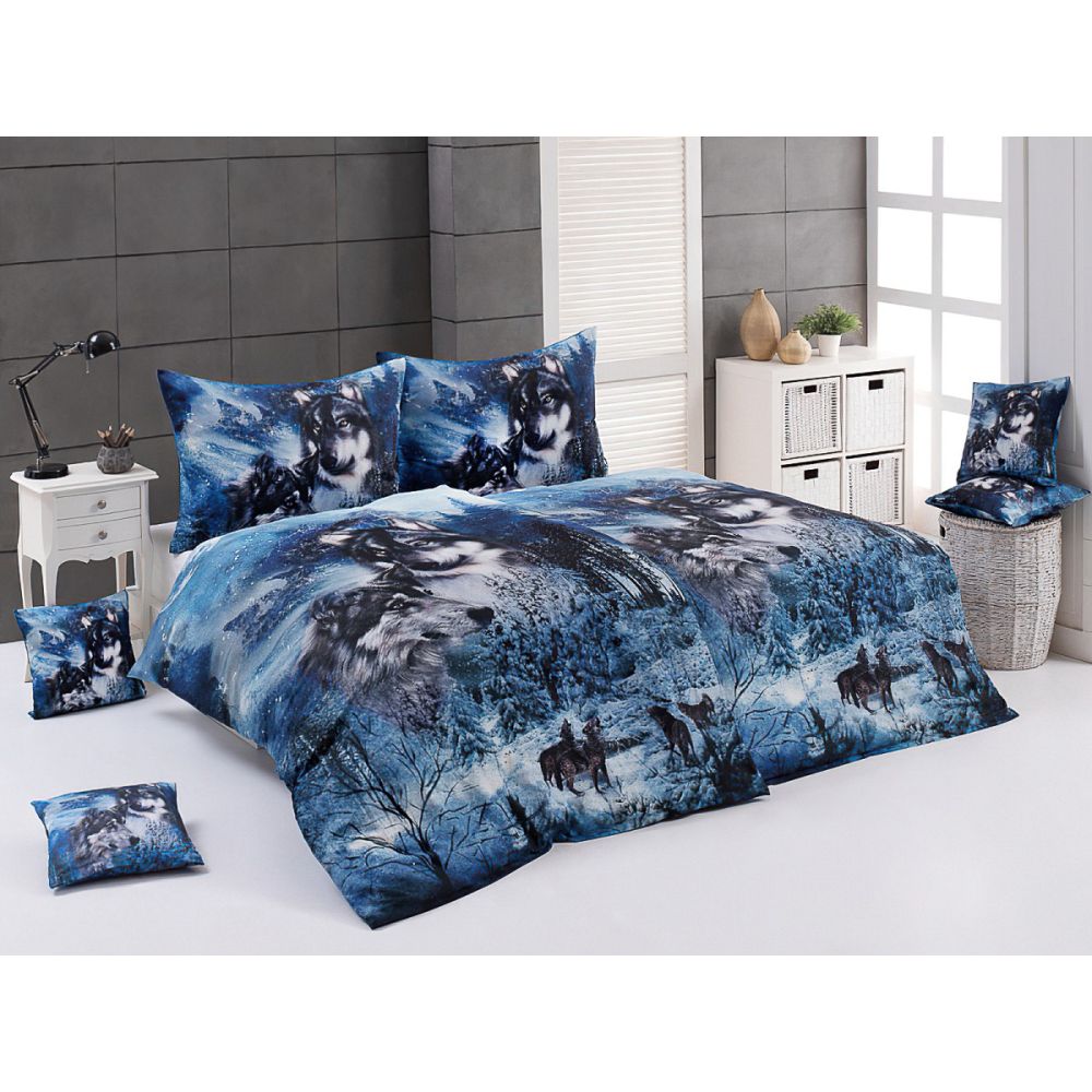 Povlečení Matějovský ALASKA, vlci, modré, bavlněný satén, digitál, 140x200cm + 70x90cm