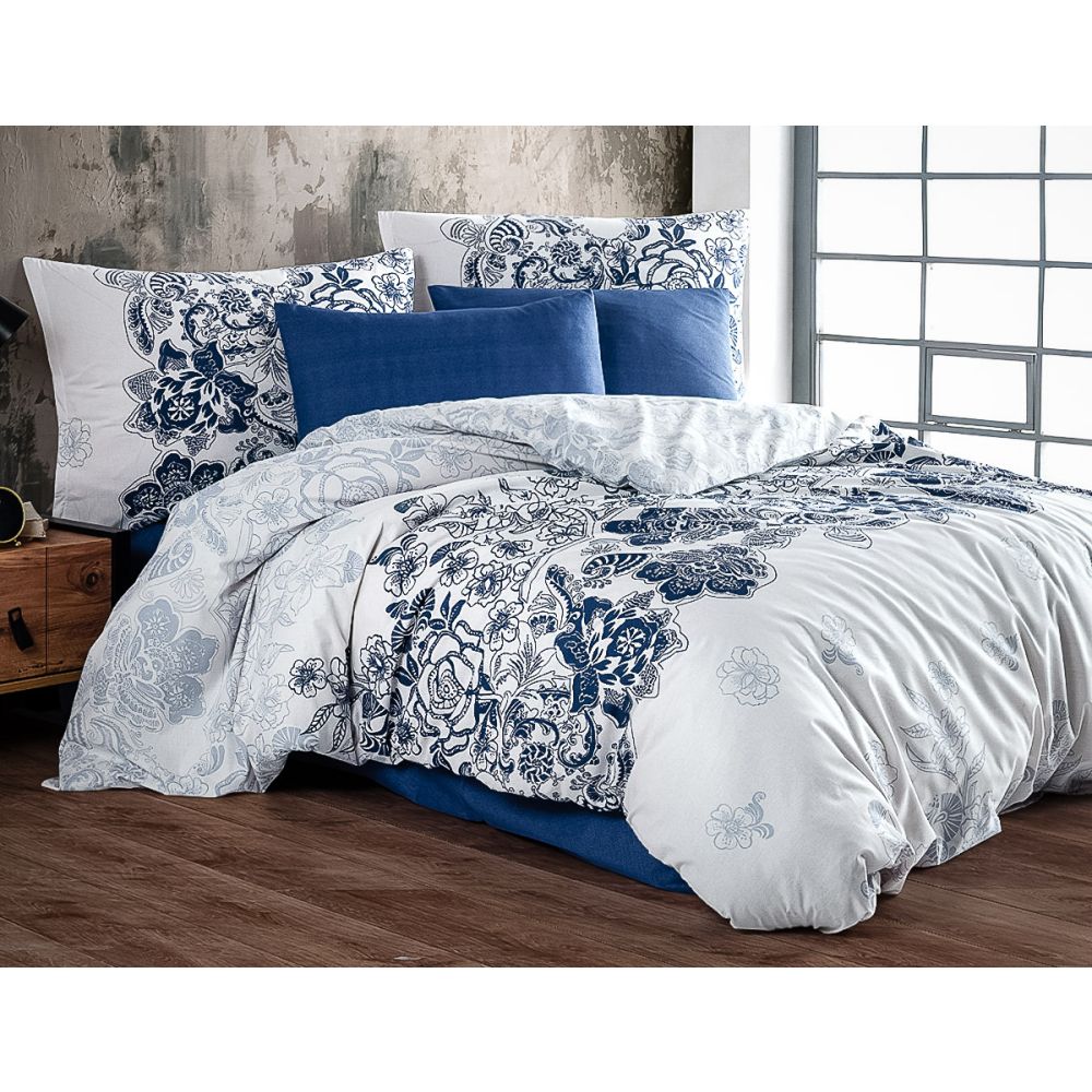 Bavlněné povlečení za dostupnou cenu se vzorem modré květinové bordury na bílém podkladu. Povlak na přikrývku má vzor z obou stran stejný. Povlak na polštář má stejný vzor. Souprava je vyrobena ze 100% bavlny a obsahuje jeden povlak na přikrývku 140 x 200 cm a jeden povlak na polštář 70 x 90 cm. Zapínání na zip.