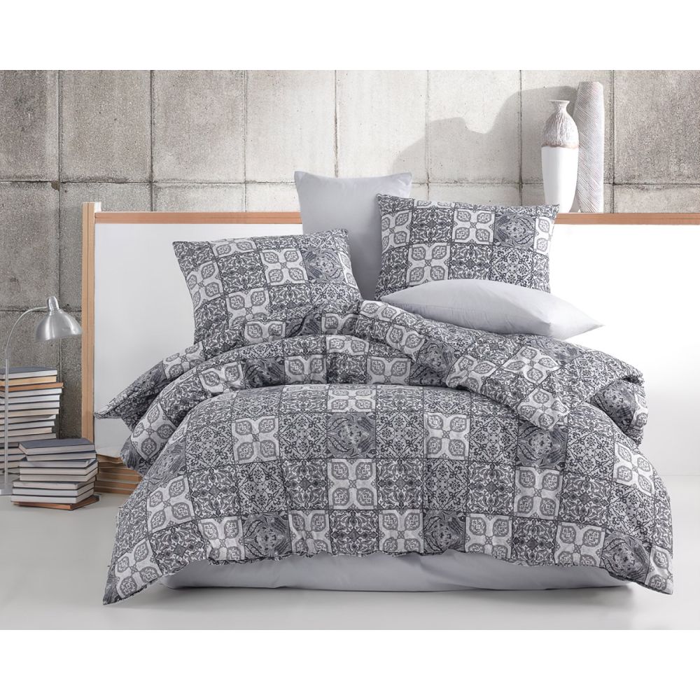 Bavlněné povlečení za dostupnou cenu se vzorem šedého patchworku. Povlak na přikrývku i povlak na polštář má z obou stran stejný vzor. Souprava je vyrobena ze 100% bavlny a obsahuje jeden povlak na přikrývku 140 x 200 cm a jeden povlak na polštář 70 x 90 cm. Zapínání na zip.