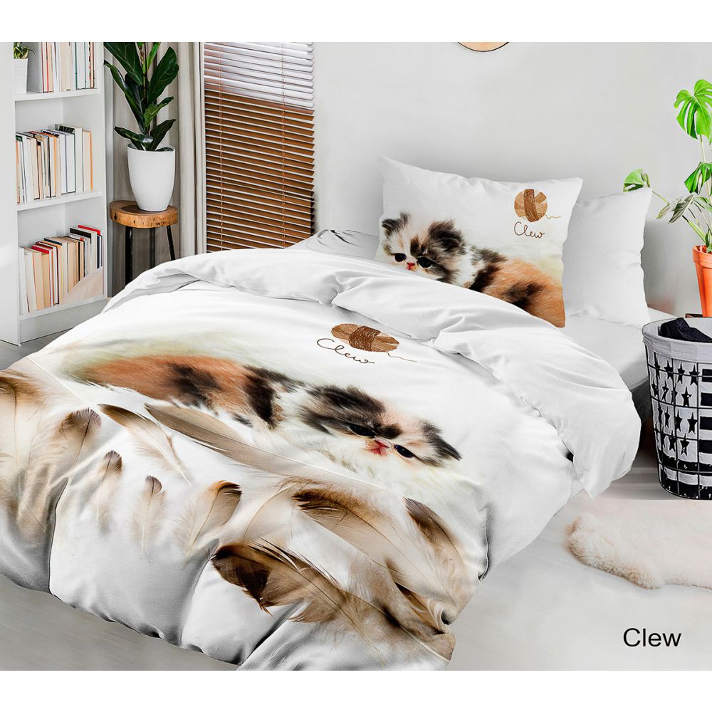 Povlečení CLEW, kočka, béžová, bavlna hladká digitál, 140x200cm + 70x90cm