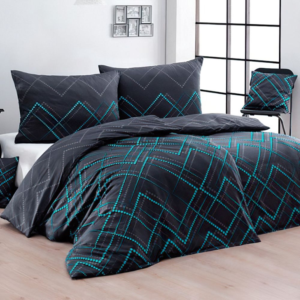 Povlečení Matějovský DEXTER, tmavě šedé s tyrkysovým kárem, (více materiálů, rozměrů)