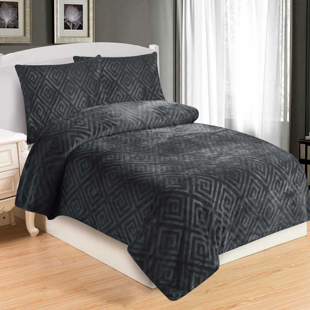 Povlečení STRUKTURA AZTEC TMAVĚ ŠEDÁ, jednobarevné, geometrický vzor, mikroflanel, 140x200cm + 70x90cm