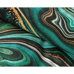 Mako jersey je tvarově stálý úplet ve vysoké gramáži, vyrobený z pečlivě vybraných přízí 100% egyptské bavlny. Látka je prodyšná, velmi dobře absorbuje vlhkost a je mimořádně hebká na dotek. Výhodou tohoto materiálu je, že nevyžaduje žehlení. Vzor je tištěn nejmodernějším digitálním tiskem, který zajišťuje vysoce precizní detail.