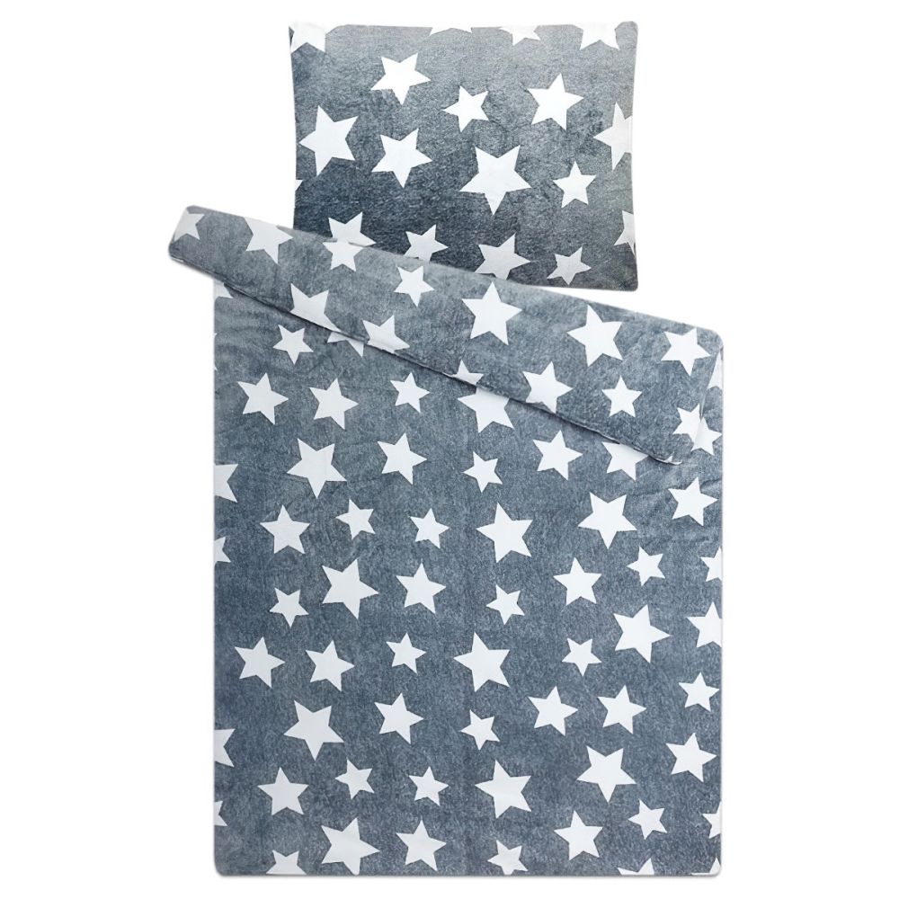 Povlečení HVĚZDY ŠEDÝ MELÍR mikroflanel, hvězdy na šedém melíru, 140x200cm + 70x90cm