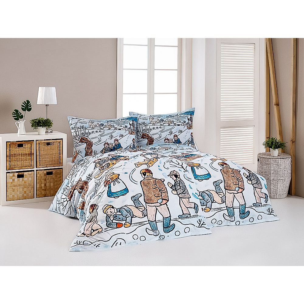 Povlečení Matějovský JOSEF LADA ZIMA, bílo-modré, bavlna hladká digitál, 140x200cm + 70x90cm
