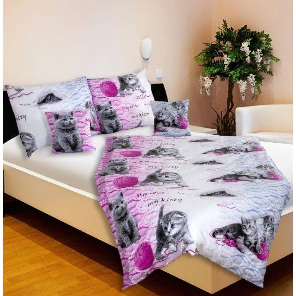 Povlečení KAROLINE 034 mourované kočičky na růžové, krep, 140x200cm + 70x90cm